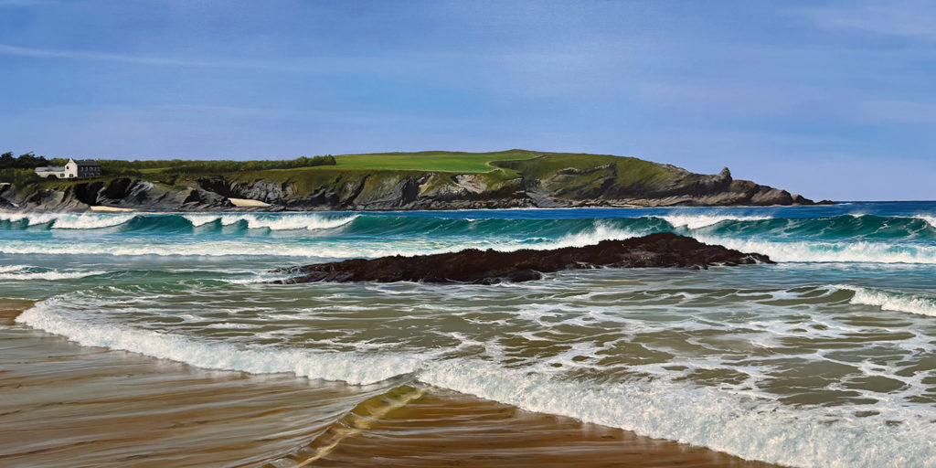 Several of his paintings are available as limited-edition prints, with commissions always welcome; one of which, Harlyn Bay, can be seen above.