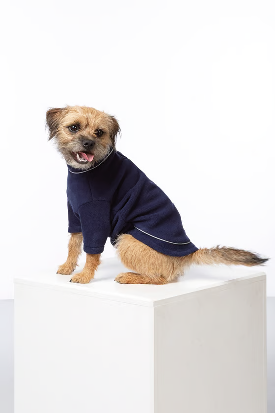 This snug fleece jumper helps keep dogs warm on chilly days. A Velcro neck fastening and easy zipper make it easy to pop on before a walk, and the wrap-around design keeps bellies fully protected.