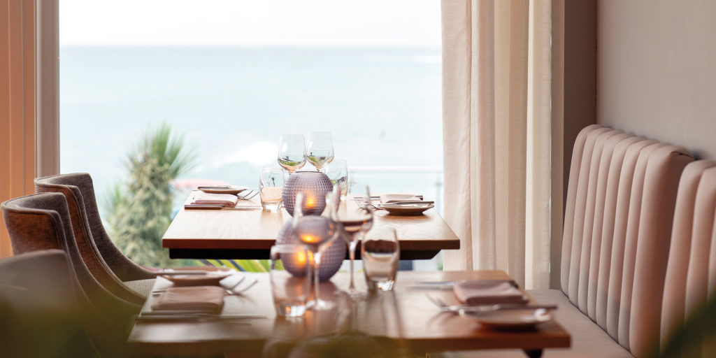Food and drink are prominent elements that the hotel can be rightly proud of. Three restaurants occupy different positions around the Bay: Zacry’s on the Seawall offers a more conventional evening format showcasing seasonal ingredients; The Beach Hut sits close to the sand with an informal menu and The Living Space provides a broad choice of small plates and cocktails set against a backdrop of broad views. The hotel’s Swim Club houses a 25-metre infinity pool, sauna, cardio studio and treatment spaces where visitors can choose to engage in movement or stillness.