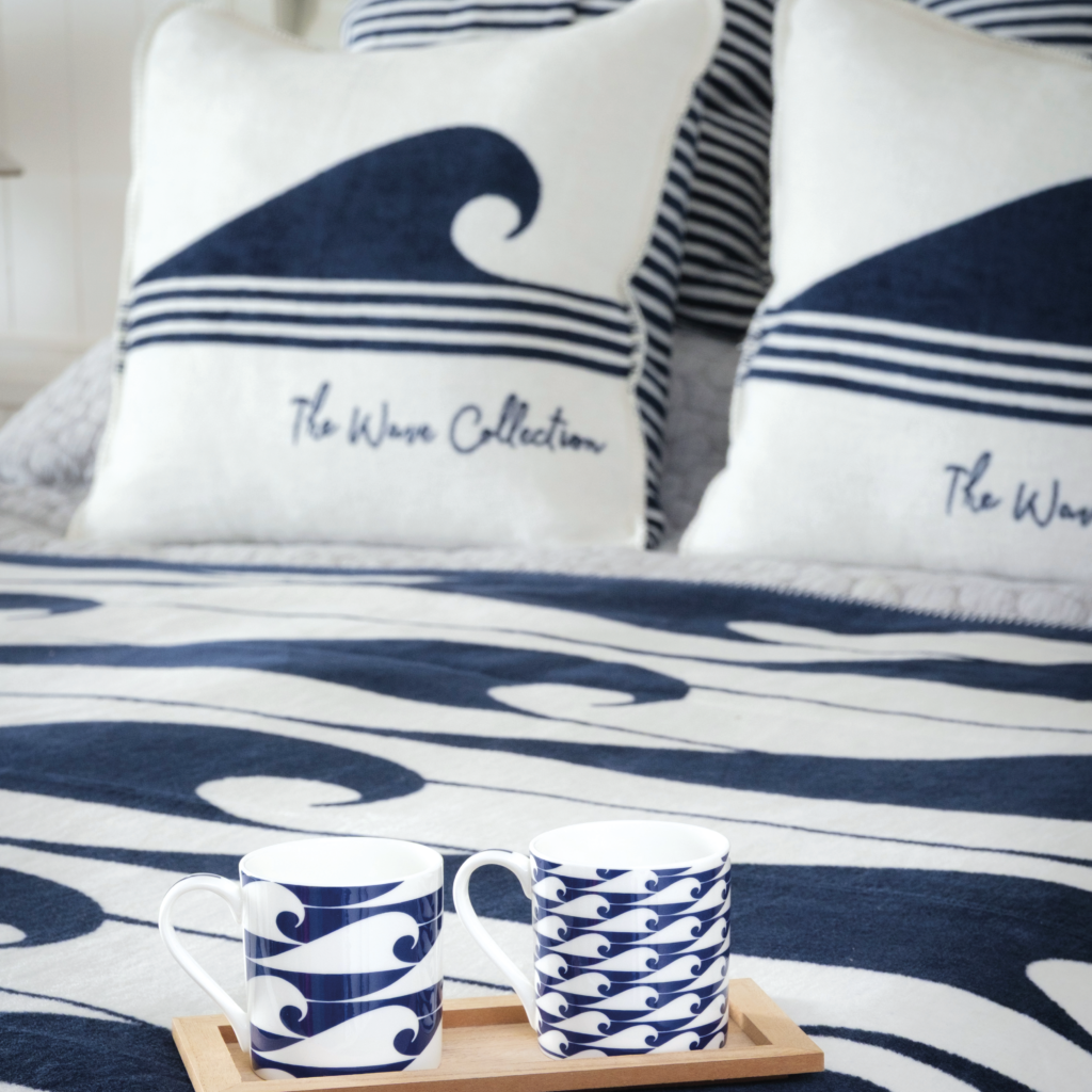From The Cornish Surfer, the collection features a super soft woven blanket and matching cushion set, finished with classic nautical stripes on the reverse. Oeko-Tex® approved, responsibly produced and filled with luxury British-made feather inserts, the cushions are designed for lasting comfort and quality.