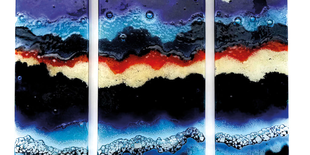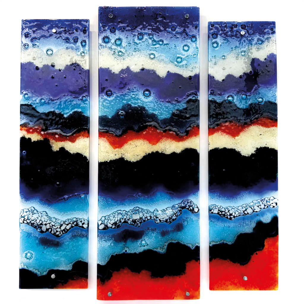Hand-crafted at their Launceston studio, this gorgeous piece of wall art includes textural detailing, bubbles and is reminiscent of breath-taking Cornish sunsets over the ocean.
