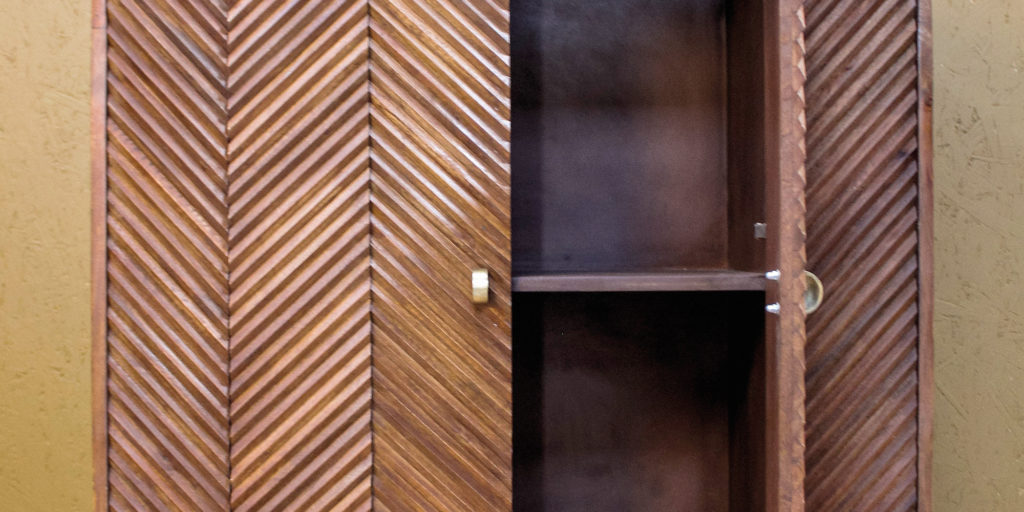 Carved Herringbone Mango-Wood Cabinet