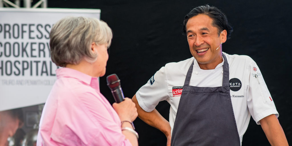 Running from April 24th to 26th, the festival has grown into one of Cornwall’s most anticipated spring gatherings, drawing chefs, producers, adults and children who come not only to eat but to take part. At its centre sits the Chef’s Theatre, positioned on the harbour head as both a literal and figurative focal point. Across three days, more than thirty chefs will step up to demonstrate their craft, offering a rolling programme that keeps the crowd moving and attentive. Among those appearing this year are Tom Brown, Olivia Barry, Ross Geach, Pete Murt and Antony Worrall Thompson, alongside festival patron Jude Kereama, whose presence continues to anchor the event with a sense of continuity and local pride.